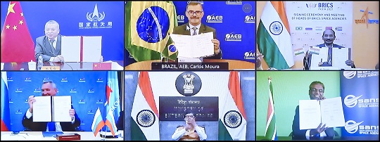 本報訊 見習(xí)記者韓瀟 通訊員張未 記者從國家航天局獲悉,2021年8月18日,國家航天局局長張克儉與巴西航天局局長卡洛斯·莫拉、俄羅斯國家航天集團總經(jīng)理羅戈津、印度空間研究組織主席西萬和南非國家航天局局長穆薩米等金磚國家航天機構(gòu)負責(zé)人進行了視頻會議,并簽署了《關(guān)于金磚國家遙感衛(wèi)星星座合作的協(xié)定》。