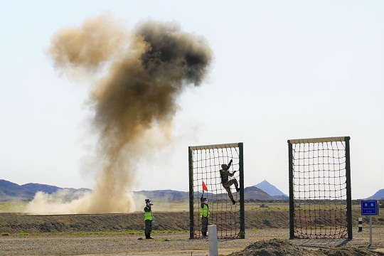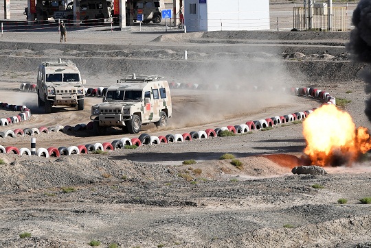 圖為中國陸軍參賽隊通過炸點路段。張永進 攝
