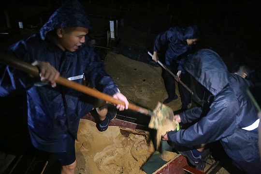 圖為連夜進行沙袋裝填。郭強強 董海龍 攝