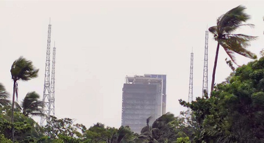圖為將回轉平臺全部打開迎戰(zhàn)臺風的發(fā)射塔架。郭強強 董海龍 攝