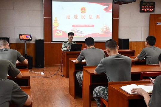 警通勤務(wù)連正在進(jìn)行一場(chǎng)普法宣講,一堂課下來(lái),戰(zhàn)士小李深有感觸地說(shuō):“家里的難題沒(méi)了,自己的心結(jié)也打開(kāi)了。”此次的宣講“專(zhuān)家”,是西安校區(qū)2019級(jí)碩士研究生小齊。