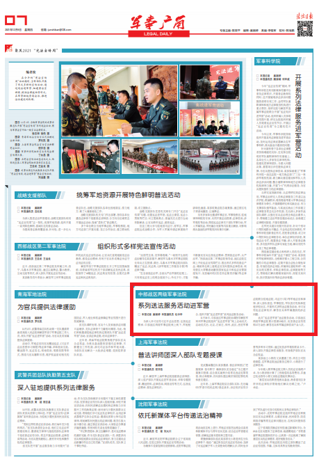 為深入學(xué)習(xí)宣傳習(xí)近平法治思想,弘揚(yáng)憲法精神,中部戰(zhàn)區(qū)兩級(jí)軍事法院線上線下、軍地配合,組織開(kāi)展“憲法進(jìn)軍營(yíng)”系列送法服務(wù)活動(dòng)。