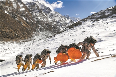 崗拉哨所海拔4820米,是山南軍分區(qū)所屬海拔最高的哨點(diǎn)。哨所常年風(fēng)雪肆虐。要趕在大雪完全封山前,把天南海北“家的味道”送上哨所,并不是件容易的事。