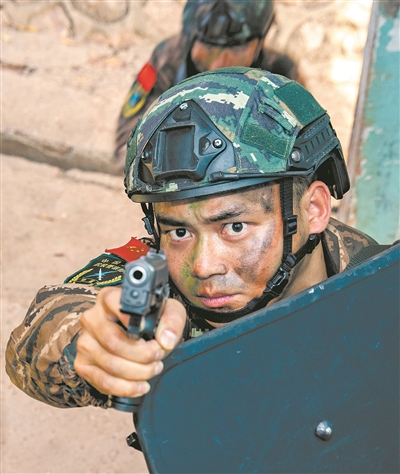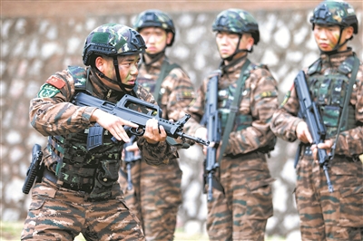 2月上旬,桂中腹地。一棟廢棄樓房內(nèi),武警特戰(zhàn)隊員正在進行隱蔽突擊訓(xùn)練?!跋旅婵次沂痉?!”現(xiàn)場組織教學(xué)的是武警廣西總隊機動支隊參謀邱健。他的動作精準迅捷,勢如猛虎,贏得官兵一片叫好聲。