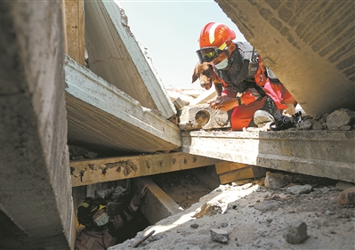 抵達(dá)現(xiàn)場(chǎng),生死時(shí)速的救援行動(dòng)隨即展開(kāi)。搜索組沖鋒在前,隊(duì)員攜帶搜救犬在廢墟間探尋生命跡象;破拆組利用電動(dòng)沖擊鉆、液壓切割機(jī)等工具,破拆垮塌的樓板;頂撐組借助承重氣墊和木塊對(duì)危險(xiǎn)部位進(jìn)行加固,防止發(fā)生二次坍塌;轉(zhuǎn)運(yùn)組快速將救出的“幸存者”轉(zhuǎn)送至安全地帶……