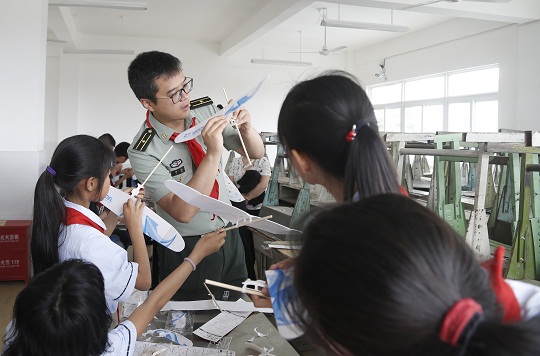 圖為2018年某部官兵深入結(jié)對學(xué)校為孩子們講授航模知識。張俊睿 攝
