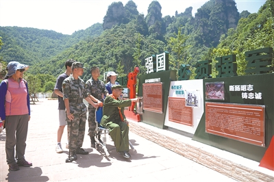 6月中旬,湖南省長沙市民李三元一家到張家界市武陵源區(qū)的十里畫廊景區(qū)游覽。聽說這里新落成了一座國防教育體驗園,一家人興致勃勃入園參觀,一同參加“國防達(dá)人”答題闖關(guān)游戲?!坝^光的同時學(xué)習(xí)國防知識,大人和孩子都受益匪淺?!崩钊f。
