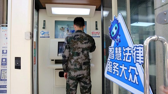 圖為智能法律服務(wù)終端產(chǎn)品為官兵提供法律服務(wù)。