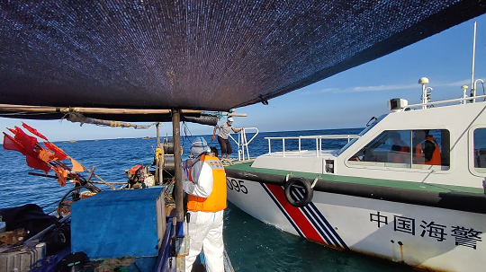 圖為執(zhí)法員安撫該遇險(xiǎn)漁民并提供飲水食物。