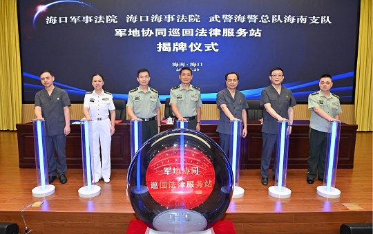 會后,軍地法院領(lǐng)導(dǎo)和海南海警局領(lǐng)導(dǎo)共同為“軍地協(xié)同巡回法律服務(wù)站”舉行揭牌儀式,該法律服務(wù)站為海警局依法履行海上維權(quán)執(zhí)法職責(zé),打擊海上違法犯罪活動,守護一方海上平安提供堅強法律保障。
