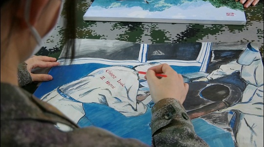 圖為維和醫(yī)療分隊(duì)隊(duì)員創(chuàng)作維和主題繪畫《生命衛(wèi)士》。