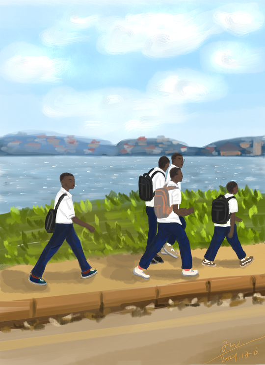 圖為維和醫(yī)療分隊(duì)隊(duì)員創(chuàng)作維和主題繪畫《追夢少年》。