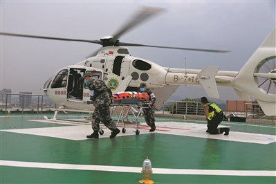 來之能戰(zhàn),靠的是底氣;戰(zhàn)之必勝,靠的是能力。黨的十八大以來,隨著我軍聯(lián)勤保障改革深化,各級(jí)衛(wèi)勤機(jī)構(gòu)不斷強(qiáng)化戰(zhàn)斗隊(duì)意識(shí),大興實(shí)戰(zhàn)化訓(xùn)練之風(fēng)。不久前,南部戰(zhàn)區(qū)總醫(yī)院參與基地化救治演練。圖為民用救護(hù)直升機(jī)運(yùn)送重傷員抵達(dá)后方。趙建偉 攝