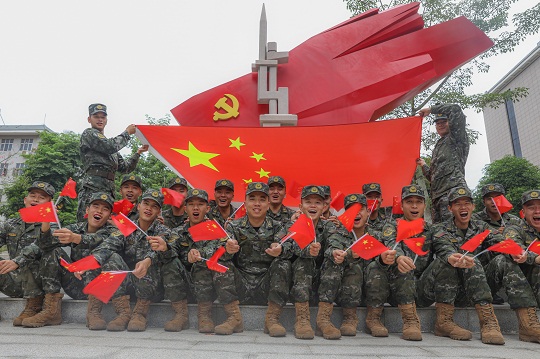 一張張與五星紅旗幸福的合影表達了武警官兵對祖國的熱愛,鮮艷的國旗也時刻提醒著我們,珍惜眼前的和平幸福,一同奮進,為祖國美好明天而不懈奮斗。