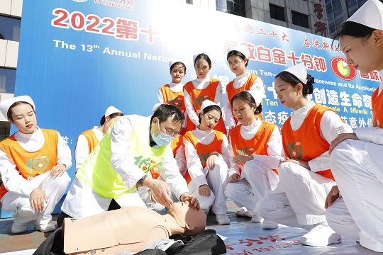 有研究顯示:我國(guó)每年猝死發(fā)生數(shù)量已經(jīng)由10多年前的54.5萬(wàn)增加到100萬(wàn)人左右,其中65%發(fā)生在頭10分鐘左右的時(shí)間內(nèi),常常發(fā)生在家中、工作崗位、公共交通或活動(dòng)等場(chǎng)所,我國(guó)每年因創(chuàng)傷就醫(yī)人數(shù)達(dá)6200萬(wàn)人次,致死70萬(wàn)人,其中25%約17.5萬(wàn)人是在10分鐘內(nèi)死于現(xiàn)場(chǎng)。為了滿足軍地急救需要,何忠杰主任醫(yī)師團(tuán)隊(duì)于2010年10月10日10時(shí),發(fā)起“白金十分鐘全國(guó)自救互救志愿服務(wù)聯(lián)盟”,開展“急救白金十分鐘·全國(guó)自救互救日”公益活動(dòng)。活動(dòng)一經(jīng)推出,醫(yī)療同行和廣大軍民群眾踴躍參加,“科普技術(shù)+白金十分鐘MV+廣場(chǎng)舞大賽”的“自救互救日”文化悄然興起,在補(bǔ)齊了應(yīng)急急救鏈的同時(shí)挽救了更多人的生命。