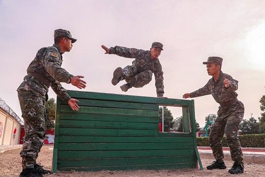 圖為官兵進行400米障礙訓(xùn)練。