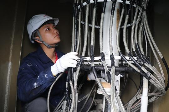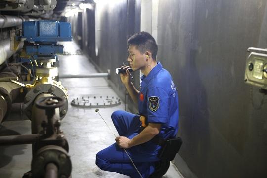 圖為動(dòng)力系統(tǒng)船員對(duì)管隧進(jìn)行巡檢。