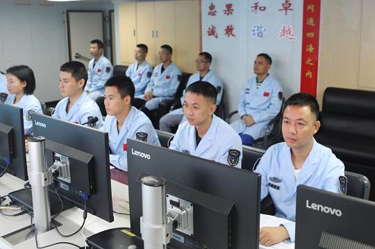 圖為通信系統(tǒng)崗位人員關(guān)注信息傳輸動(dòng)向。