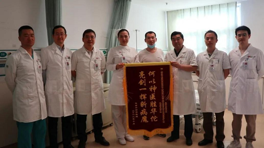 圖為患者家屬送上錦旗。