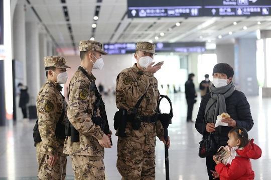 圖為武警安徽總隊合肥支隊官兵為旅客提供幫助。本報通訊員 董浩朋 攝