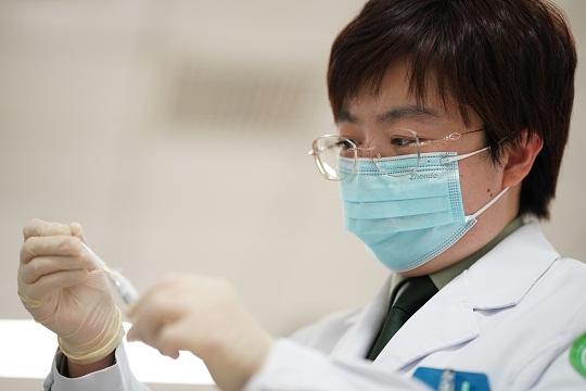 圖為武警特色醫(yī)學(xué)中心檢驗科主管技師劉持佳正在提取患者血清。程壯壯 攝