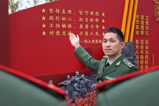 圖為武警浙江總隊嘉興支隊偵察股股長周彥楠給下隊新兵開展隊史教育。李超 攝