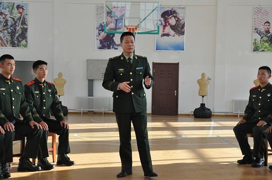 圖為武警部隊理論服務(wù)分隊成員、江蘇海警局執(zhí)法部偵察科科長王志國為武警吉林總隊白山支隊官兵宣講理論知識。徐笠桓 攝