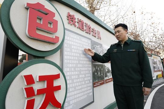 圖為武警山東總隊棗莊支隊組織紀(jì)檢股干事李命命學(xué)習(xí)支隊軍史長廊陳展。曹正寶 攝
