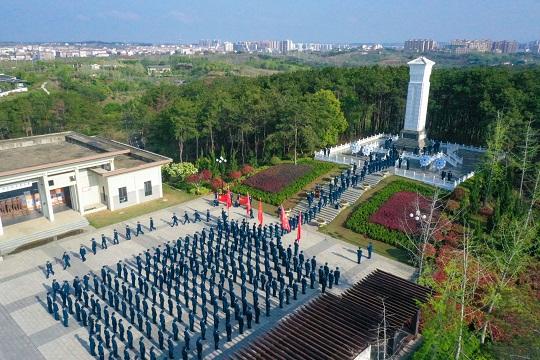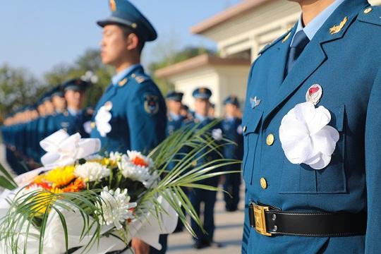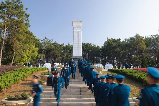 圖為官兵瞻仰烈士紀念碑。
