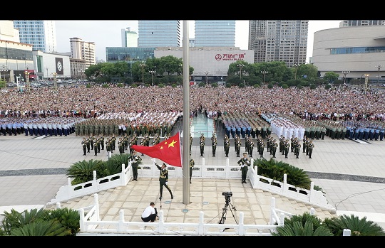 圖為8月1日上午,全軍院?!皬?qiáng)軍杯”系列比賽集中交流賽560余名官兵與南昌市相關(guān)代表集合在南昌八一廣場(chǎng)參加升旗儀式。劉宇龍 攝