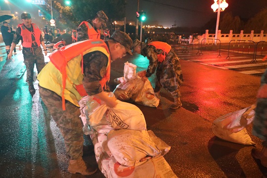 7月31日上午,北京市昌平區(qū)北沙河水位暴漲,南側(cè)大堤出現(xiàn)決口,上千名群眾被困。中部戰(zhàn)區(qū)空軍某部啟動應(yīng)急預(yù)案,組織出動10余臺車輛,攜帶救援物資奔赴受災(zāi)地區(qū)。到達(dá)現(xiàn)場后,官兵裝填沙袋、在水中搭人墻減緩水流,同時迅速開展排查搜救,轉(zhuǎn)移受災(zāi)群眾。通過與地方政府密切配合,排查受災(zāi)居民數(shù)百戶,轉(zhuǎn)運群眾近400人。
