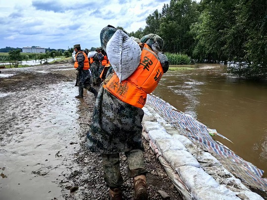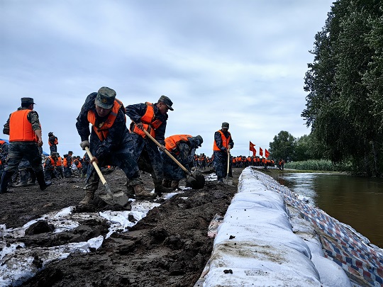 8月4日傍晚,齊齊哈爾市雅魯河水位暴漲,出現(xiàn)多處管涌和塌方。某合成旅200余名官兵深夜出征,次日凌晨3時(shí)抵達(dá),到位后快速展開、快速搶險(xiǎn);因上游水庫泄洪,哈爾濱市雙城區(qū)拉林河面臨超大洪峰。8月7日凌晨4時(shí),某合成旅450名官兵星夜兼程奔赴河堤,與先期抵達(dá)的官兵一同加固堤防。