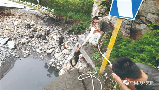 圖為某旅官兵橫渡道路水毀地段。孫志鵬 攝