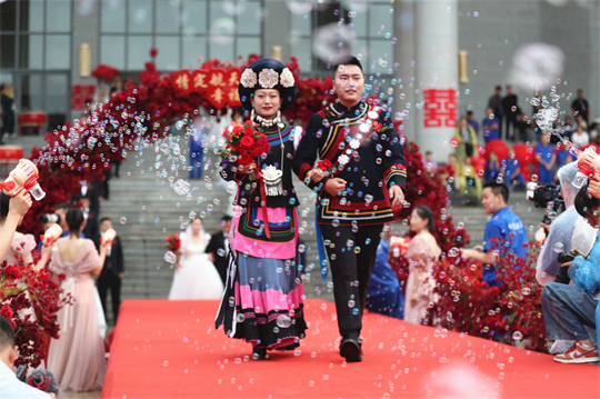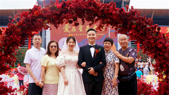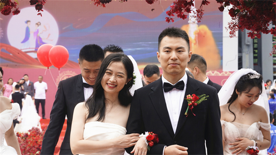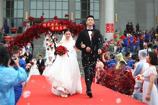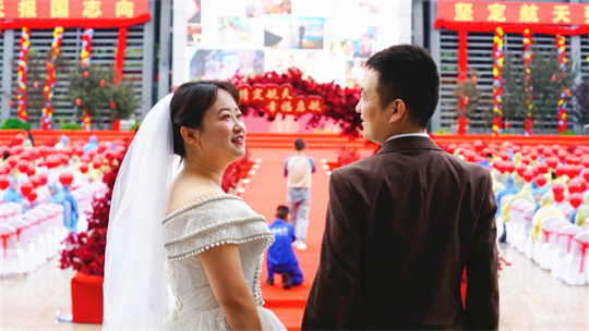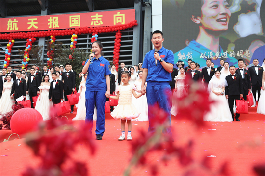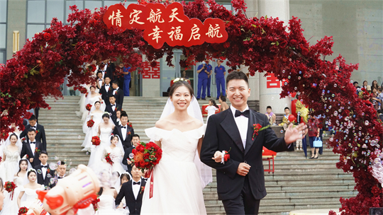一項(xiàng)項(xiàng)儀式,將集體婚禮活動(dòng)引向高潮。此次參加集體婚禮的航天工作者大多來自一線崗位,他們常年執(zhí)行高密度航天發(fā)射任務(wù),缺少時(shí)間與愛人團(tuán)聚,有的婚期更是一再推遲。中心為一對(duì)對(duì)新人搭建起盛大的舞臺(tái),舉辦隆重的集體婚禮,讓祖國見證他們的幸福與榮光。