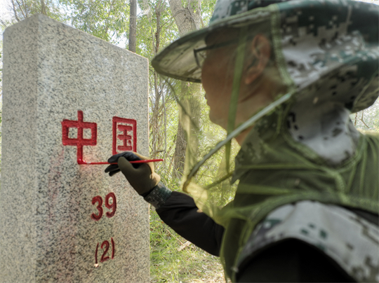 這支由邊防戰(zhàn)士、清華學子和武警官兵組成的特別隊伍一路前行,他們用雙腳丈量祖國的邊防線,用雙手親自為界碑描紅,面向鮮艷的五星紅旗莊嚴宣誓。