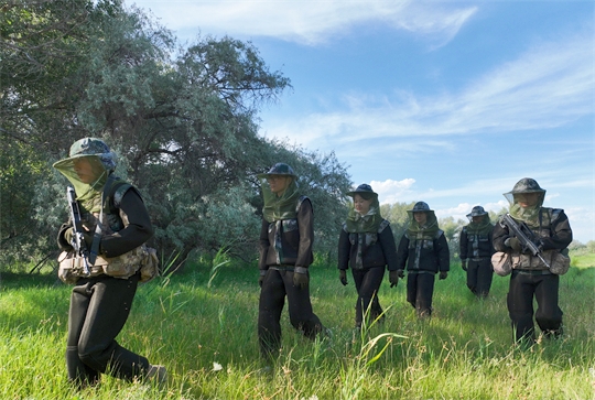 清華學子走進武警兵團總隊執(zhí)勤第五支隊營區(qū),換上軍裝參加軍事訓練,陪哨兵同站一班崗,觀摩特戰(zhàn)武器裝備展示……