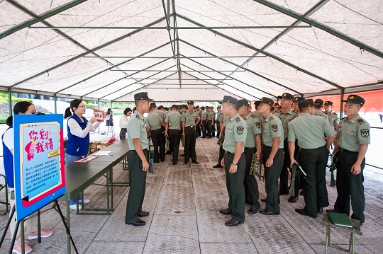 圖為“法治溫暖官兵心”退伍季法治教育和擁軍政策宣傳活動現(xiàn)場。