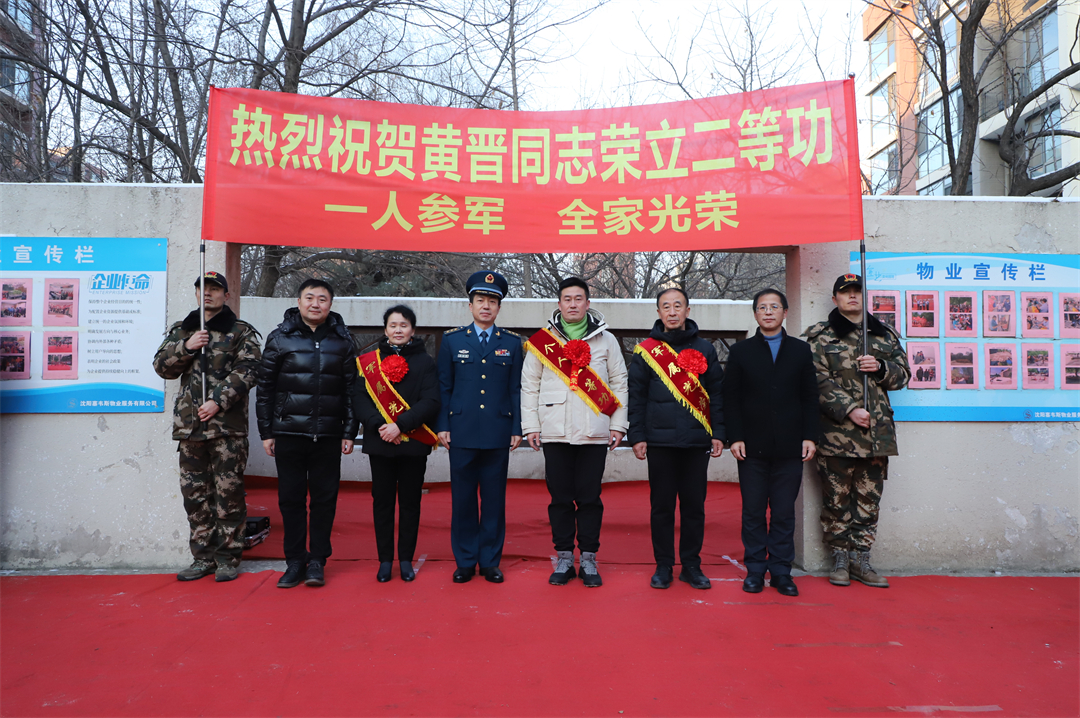 1月4日,遼寧省沈陽市大東區(qū)東方歐博城小區(qū)內(nèi)鑼鼓喧天、人頭攢動。沈陽市大東區(qū)退役軍人事務(wù)局聯(lián)合大東區(qū)人武部和中國人民解放軍某部一起,為榮立二等功的黃晉送來立功喜報和“二等功臣之家”牌匾。