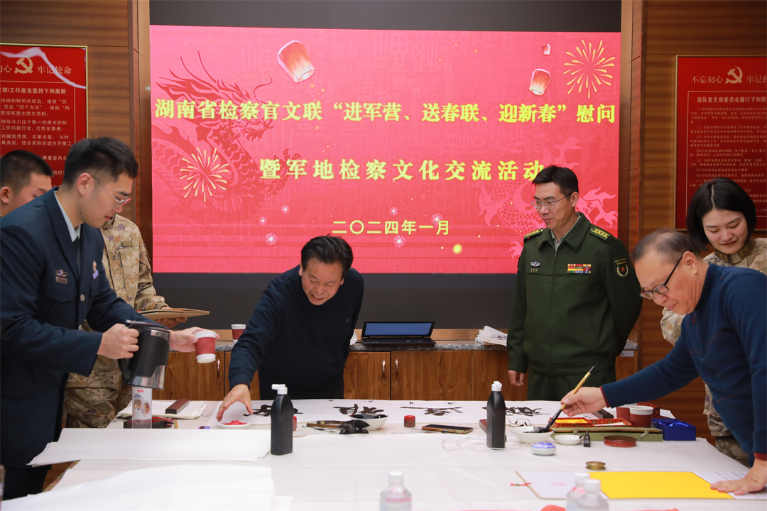 近日,解放軍長沙軍事檢察院攜手湖南省人民檢察院政治部、湖南省檢察官文聯(lián)開展“進軍營、送春聯(lián)、迎新春”慰問暨軍地檢察文化交流活動。