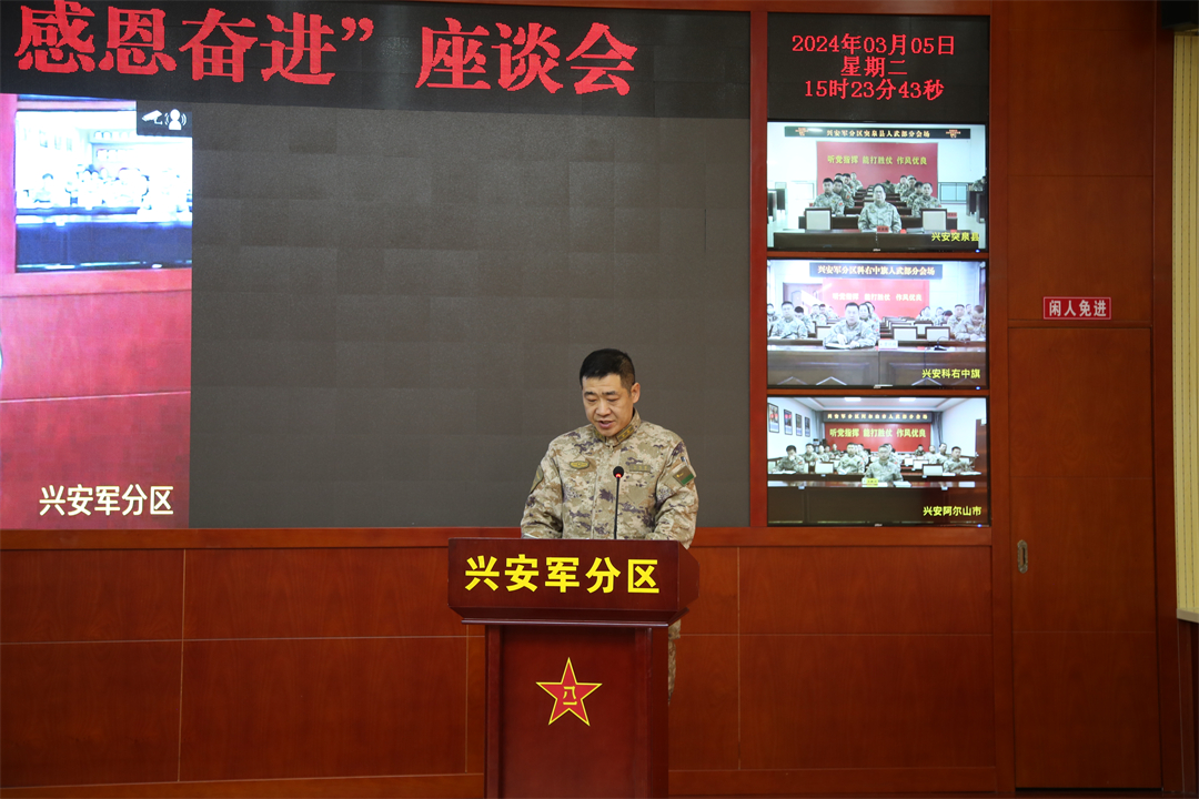 近日,結(jié)合內(nèi)蒙古軍區(qū)“統(tǒng)帥視察十周年、強固北疆譜新篇”活動,興安軍分區(qū)組織了一次意義特殊的座談會,激勵官兵牢記囑托、感恩奮進。