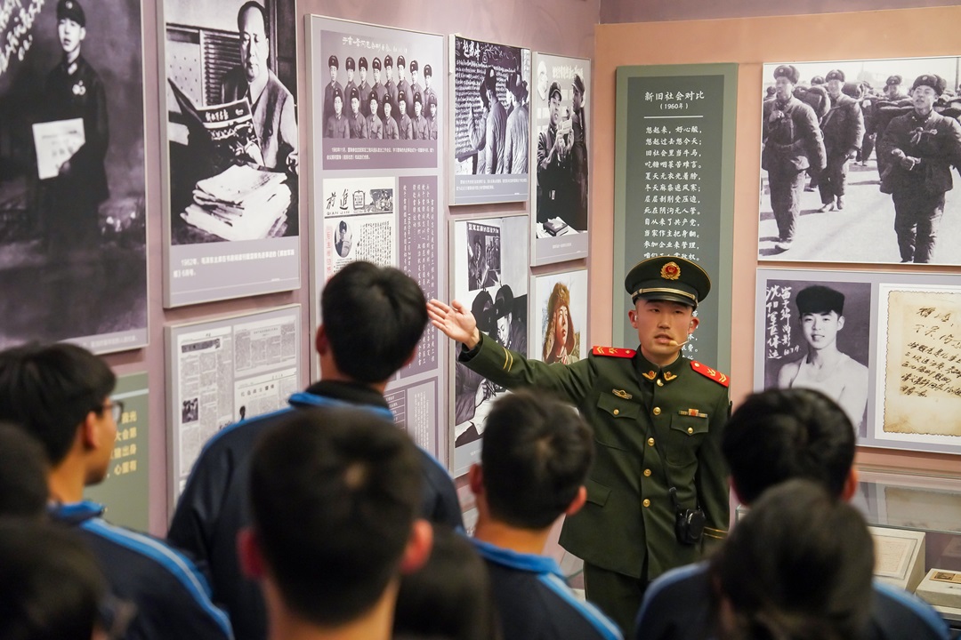 圖為武警長沙支隊“紅肩章”講解員在雷鋒紀念館進行義務講解。