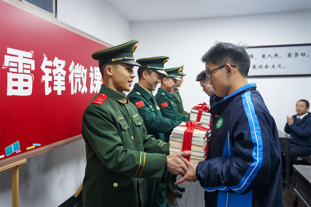 圖為武警長沙支隊官兵為青年學生贈送雷鋒書籍。