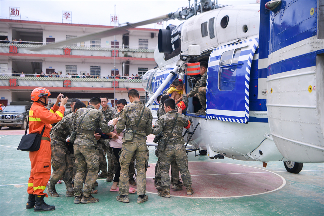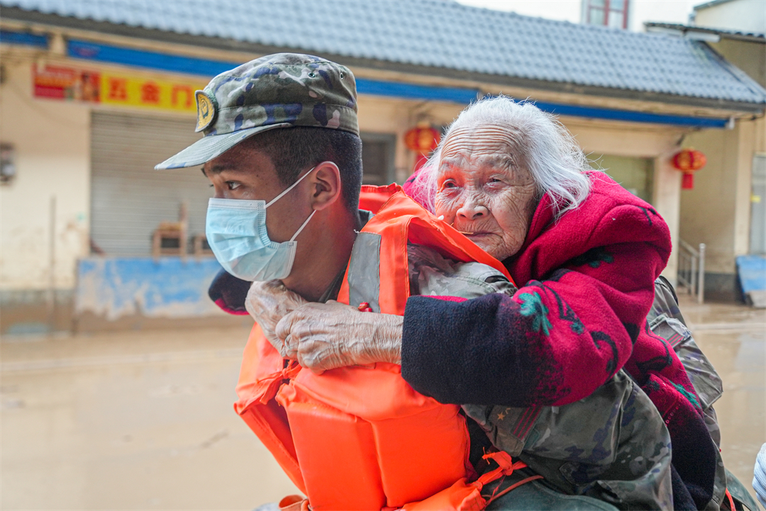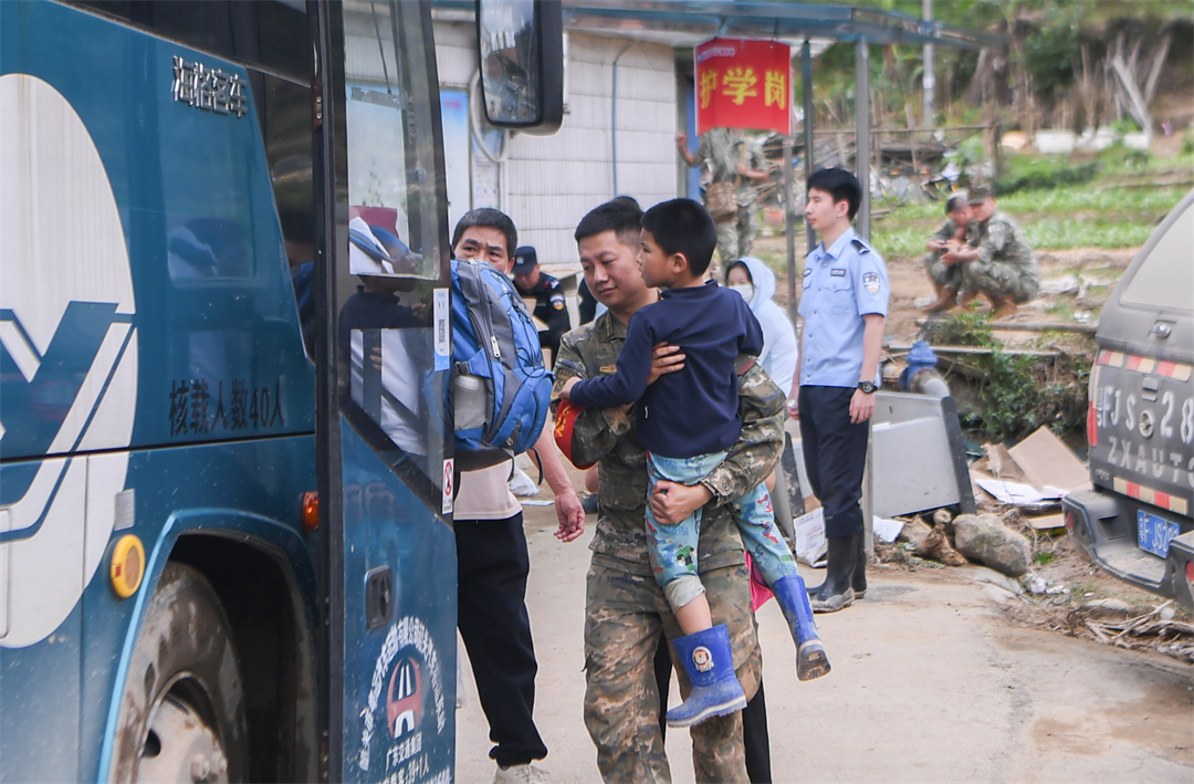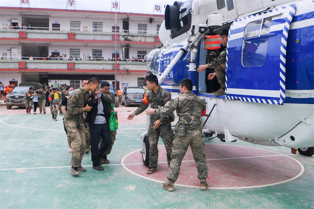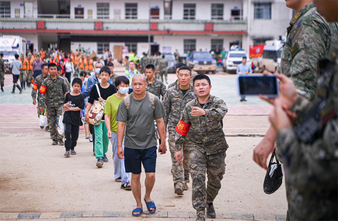 “凌晨6點(diǎn)天還沒(méi)亮,所有官兵就帶上干糧出發(fā)到各個(gè)村去疏散群眾。”楊忠說(shuō),江灣鎮(zhèn)下屬6個(gè)行政村有大大小小43個(gè)自然村,除情況最嚴(yán)重的梁屋村派出60人外,鍋溪村、圍坪村、江灣中心小學(xué)各派出30名兵力,胡屋村派出40名兵力,劃分若干個(gè)小組,聯(lián)合地方救援人員,按照先遣勘察、重裝開道、輕裝跟進(jìn)、觀察警戒的方式,逐村逐戶搜索勸離,剩余人員就在江灣中學(xué)和江灣鎮(zhèn)政府協(xié)助轉(zhuǎn)運(yùn)群眾。