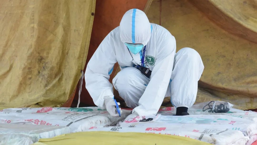 圖為2022年6月,福建海警局破獲“2022.3.08”特大走私毒品案,工作人員檢測涉案毒品。
