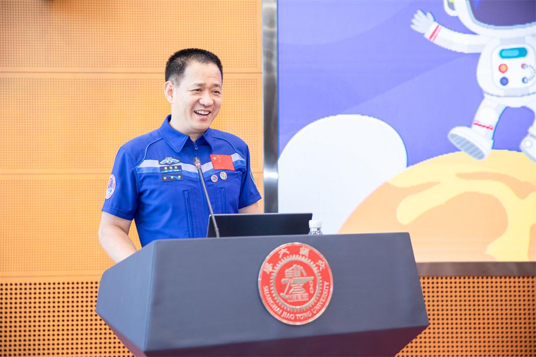 聶海勝從航天員日常訓練講起,圍繞中國空間站在軌建造、航天員緊張忙碌的太空工作,結合視頻展示,給大家講了一堂生動的航天科普課。授課結束后,聶海勝和師生們精彩互動,希望同學們堅持夢想,成為國家建設棟梁之材。
