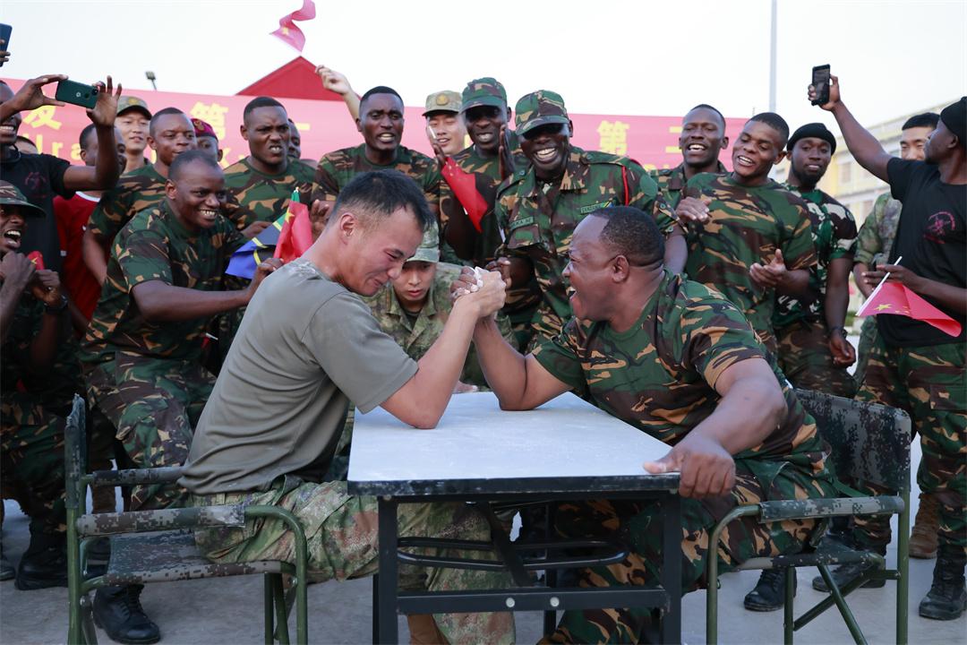 比賽結(jié)束后,雙方領(lǐng)導(dǎo)為優(yōu)勝團(tuán)隊(duì)合影留念,兩國(guó)官兵遲遲不愿離場(chǎng),又自發(fā)開展了軍體拳、捕俘拳等交流活動(dòng)。大家仔細(xì)觀看,躍躍欲試,歡呼聲和加油聲此起彼伏,一浪蓋過(guò)一浪。中方官兵現(xiàn)場(chǎng)主動(dòng)教學(xué),將中華優(yōu)秀傳統(tǒng)文化介紹給坦方友人,大家在友好交流中不斷深化了解,在歡聲笑語(yǔ)間感受中華文化的獨(dú)特魅力。