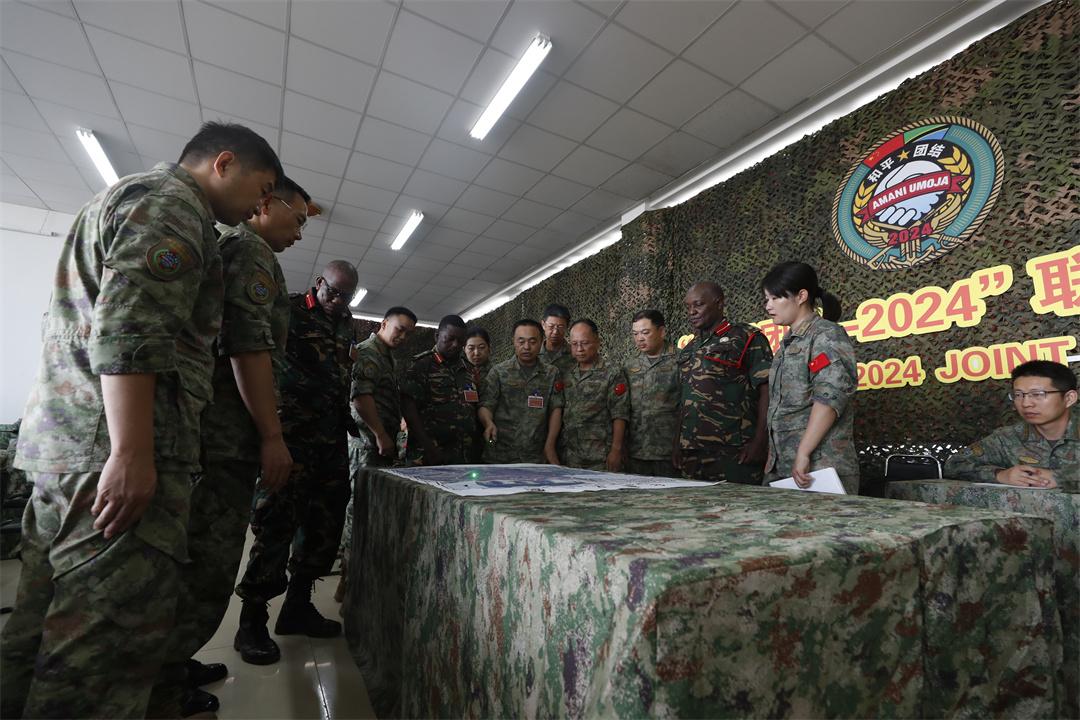 圖為中坦雙方聯(lián)合導(dǎo)演部正在細(xì)化導(dǎo)調(diào)計劃。