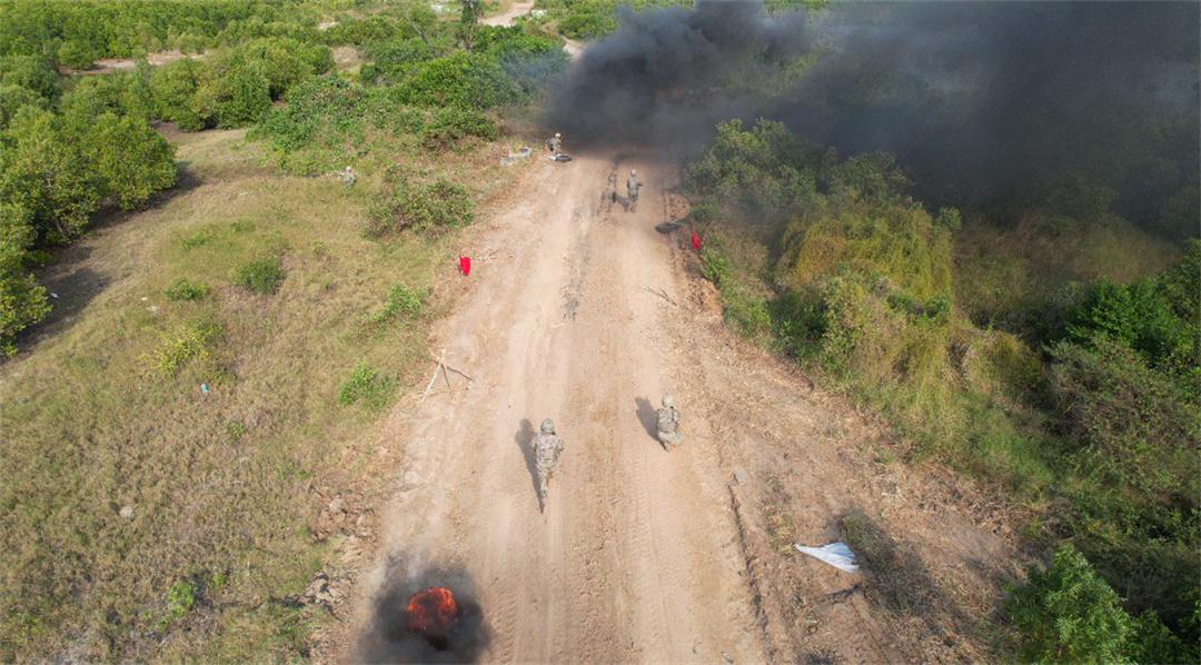 下午4時(shí)許,實(shí)兵合練正式開始。中坦雙方參演部隊(duì)以執(zhí)行聯(lián)合反恐軍事行動(dòng)任務(wù)為背景,共同完成聯(lián)合滲透偵察、多路分區(qū)圍殲、隱蔽突入營救、立體追擊清剿等課目演練,在近似實(shí)戰(zhàn)的環(huán)境中,錘煉提升中坦雙方官兵協(xié)同作戰(zhàn)能力。