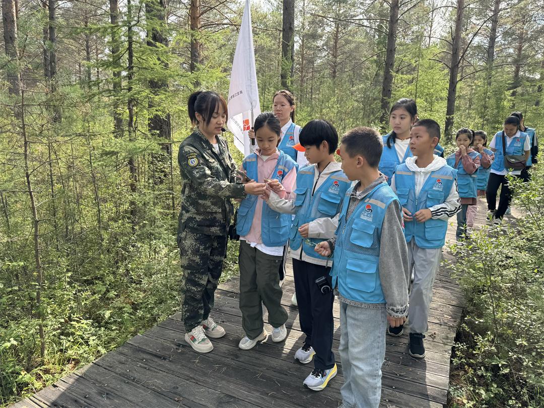 隨后,少先隊員與軍警代表共同重走習(xí)近平總書記在漠河鎮(zhèn)考察的路線——母樹林。講解員講述了大興安嶺開發(fā)建設(shè)60周年的歷程和感人的戍邊故事。