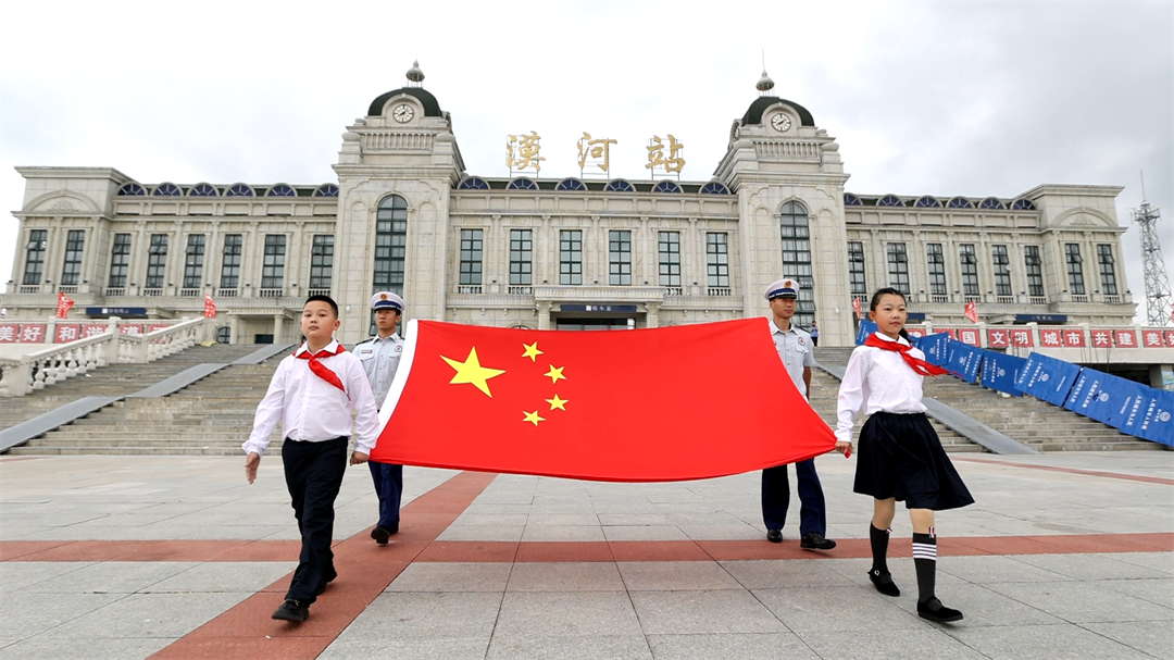 8月16日上午,“紅領(lǐng)巾愛祖國——我心中的五星紅旗”國旗傳遞活動黑龍江省漠河站,在漠河市北極鎮(zhèn)中心小學(xué)舉行。來自全省各地的少先隊員代表、輔導(dǎo)員代表、漠河市黨政軍警民代表、西部計劃志愿者共計100余人參加活動。